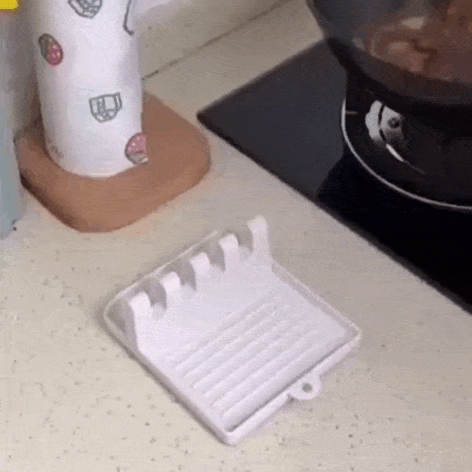 Підставка створена для комфорту та забезпечення чистоти під час приготування їжі. Глибокі виїмки надійно фіксують столові приладів та посуд. Високі борти та припідняті смужки утримують рідину, не дозволяючи забруднювати робочу поверхню. Протиковзна основа надійно утримує високі та важкі кришки, запобігаючи їх скочування або падіння. Також спеціальна петелька для зручного вертикального зберігання та економії вільного простору на вашій кухні.