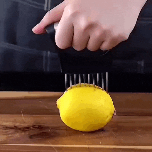 FoodSlice — це геніальне рішення для тих, хто прагне досягти досконалості у приготуванні їжі. Завдяки ергономічній рукоятці та 10 сталевим зубцям, тримач забезпечує надійне утримування продуктів під час нарізки, навіть якщо ваші руки мокрі чи ви в рукавичках. Конструкція створена так, щоб ви могли швидко та легко нарізати продукти на однакові скибочки, зберігаючи час та захищаючи руки від порізів.
