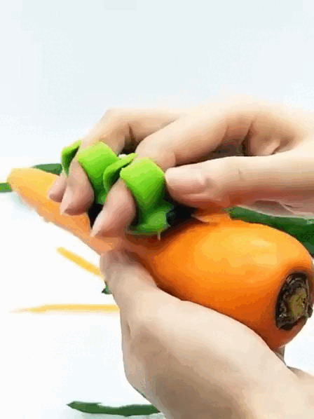FingerPeel — це зручний інструмент, який дозволяє швидко та ефективно очищати овочі й фрукти від шкірки, не докладаючи значних зусиль. Завдяки унікальному дизайну з отворами для пальців, очищувач забезпечує комфортний захват, зводячи до мінімуму ризик випадкових порізів і пошкоджень шкіри.