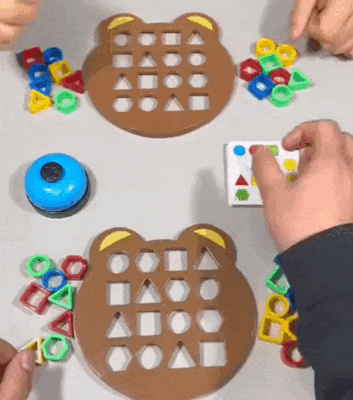 • Безпека: Всі компоненти ShapeMatch виготовлені з безпечних матеріалів: АБС-пластик для фігур та ігрового поля й якісний папір для карток. Елементи гри мають гладкі краї та стійкі до пошкоджень при падінні, що робить гру безпечною навіть для наймолодших гравців.