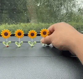 SunnerSade — це декоративні самоклейкі соняшники на пружинках, які ніжно колишуться під час руху та створюють затишну атмосферу в салоні. Компактні та стильні, вони легко кріпляться на панель приладів, дзеркало чи навіть автомобільний монітор — і щоразу дарують посмішку.