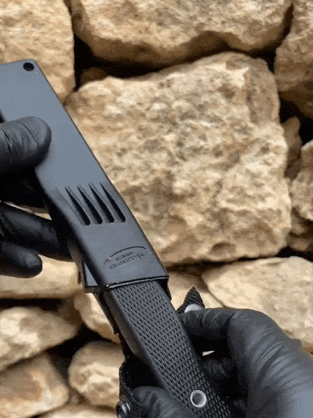 Ергономічна рукоятка з нековзкого полімеру забезпечує надійний хват навіть у дощ чи холод, а ударостійкий чохол дозволяє безпечно носити ніж на поясі. Цей інструмент створений для полювання, кемпінгу, бушкрафту та екстримальних умов.