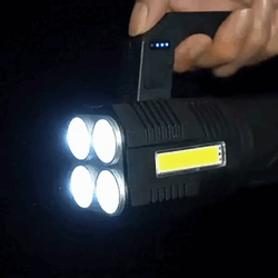 Ліхтарик BrightGlow — це потужний ручний акумуляторний ліхтар із дальністю світла до 500 метрів, який стане надійним джерелом освітлення вдома, у дорозі чи на природі. Завдяки поєднанню 4 передніх світлодіодів та бокової COB-панелі, модель забезпечує як спрямований промінь, так і м’яке розсіяне світло для освітлення приміщення.
